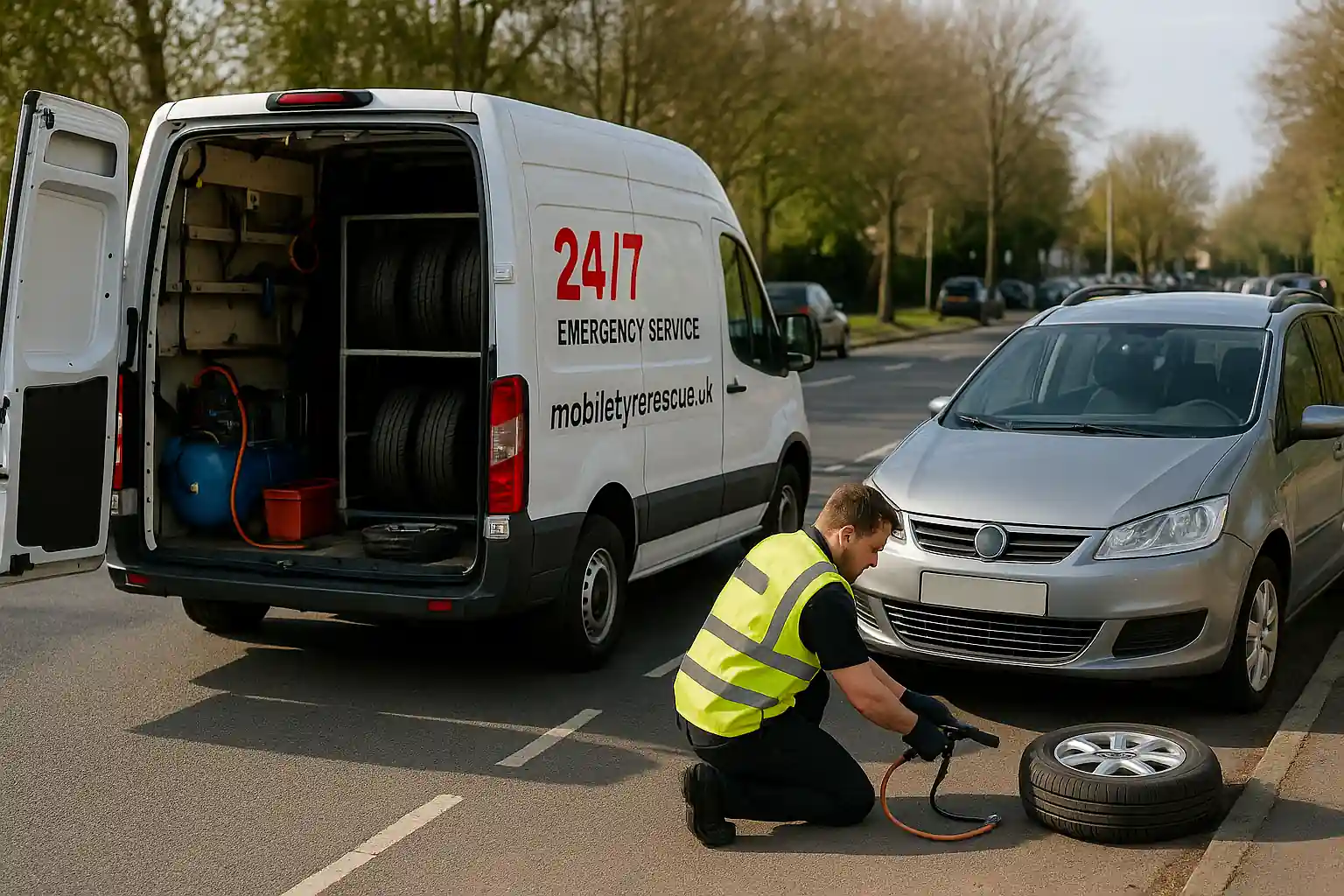 Mobile Tyre Replacement is a convenient service where a technician comes to your home, workplace, or roadside to replace your tyres on the spot — no need to visit a garage.